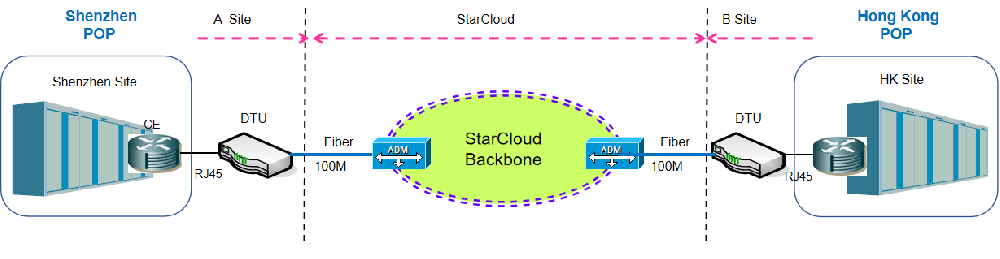 1、Customer Sites via Local Loop access StarCloud local POP, then through StarCloud backbone connect IEPL platform, Interface is Gigabit Ethernet or SFP.